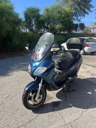 Maxi scooter Piaggio X9 Evolution en buen estado. Ideal para moverse por la ciudad con comodidad y estilo. - Motor de 125cc. - Transmisión automática. - Baúl original - Asiento recién tapizado -68.000km Gran capacidad; en el asiento cabe un casco y en el baul dos, o uno y una chaqueta por ejemplo. Tiene los espejos retrovisores en perfecto estado que es raro verlo en estas motos. Siempre duerme en garaje. Tiene rectificada la junta de culata de hace un año por ello, anda como el primer día. El motor es durísimo y muy fiable. La vendo por falta de uso. No me corre prisa, abstenerse ofertas absurdas por favor.