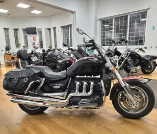 E-TRON AUTOMOCION ponemos a la venta moto custom TRIUMPH ROCKET III 2300cc matriculada en octubre 2008 con 59200 km, recien revisada en nuestros talleres con 1 año de garantía, neumáticos al 90%, maletas piel, defensas delanteras y traseras, respaldo, 2 manillares el de las imágenes y otro mas bajo, transferencia incluida en el precio, financiacion hasta 96 cuotas con o sin entrada, enviamos a su domicilio en cualquier punto de España desde 80euros, Baleares y Canarias consultar, aceptamos su moto, enviamos video personalizado