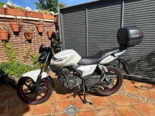 Moto Keeway RKS 125 en color blanco. Ideal para desplazamientos urbanos. Duerme en garaje. Uso diario, sin ningun tipo de problema. Perfecta para uso con carnet B y aficionarte al mundo del motociclismo. Km: 10444 Itv hasta 04/2027 Año primera matriculación: 2012 - Incluye baúl trasero. - Marcador de marchas para principiantes. - Ruedas con detalles en rojo. - Diseño deportivo. Tiene un par de cosas que habria que hacerle, aunque la moto va perfecta: un tornillo partido dentro del disco trasero (sacarlo y ponerle otro) y cambiar la junta del carburador (pierde gotas de gasolina). Si te la llevas asi el precio baja 100€.