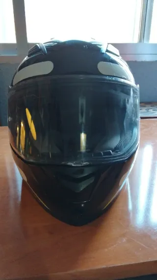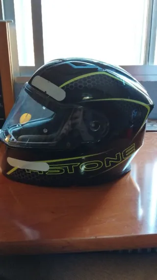 Casco de moto Astone talla S, necesita un lavado interior. - Color negro con detalles en amarillo fosforescente. - Visera transparente. - Diseño con patrón de hexágonos.