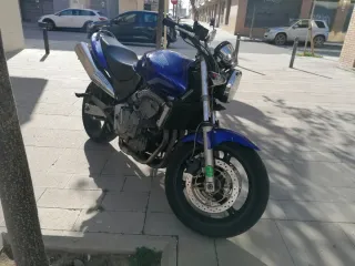 Moto Honda CB600F Hornet en color azul. Motor: 4 cilindros en línea, 4 tiempos Cilindrada: 599 cc Potencia: ~95 CV a 12.000 rpm Par motor: ~63 Nm Refrigeración: Líquida Cambio: 6 velocidades Alimentación: Carburadores Chasis: Doble viga de acero Frenos delanteros: Doble disco Freno trasero: Disco simple Peso en seco: ~176 kg Depósito: 16 litros 100820km En buen estado. Sólo tiene un golpe en el lado izquierdo del depósito. Recién revisada. Del 2002. ITV hasta 2028 Precio negociable.