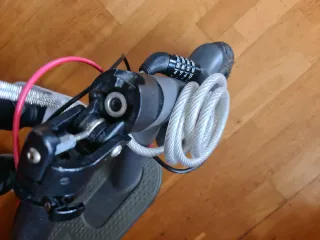 Scooter con candado de combinación incluido. - Candado de cable plateado. - Combinación de 4 dígitos.