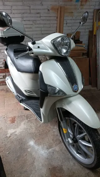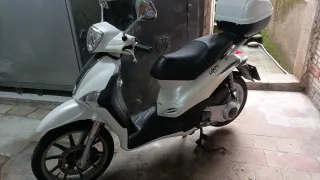 Piaggio Liberty 125cc en color blanco y negro. Un scooter ágil y práctico para la ciudad. En muy buen estado. Revision recien hecha. Baúl trasero incluido.
