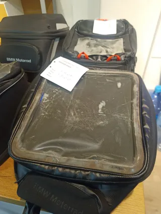 Conjunto de bolsas sobre depósito para motocicleta BMW Motorrad. Diseñadas para ofrecer practicidad y estilo en tus viajes. - Material textil resistente. - Compartimento superior transparente. - Cierre con cremallera BMW F800R F800gt K1300Gt R1200R 2006 al 2013 Difíciles de encontrar,modelos fuera de catálogo.