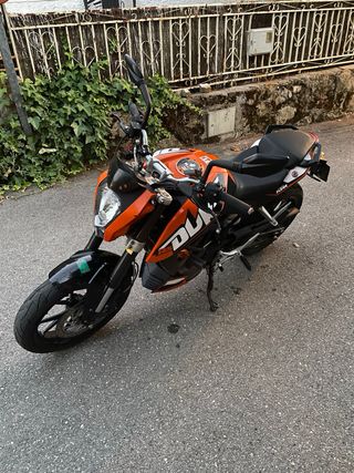 Moto KTM Duke 125 año 2013, con 42500 km, revision recien pasada, itv recien pasada, rueda trasera recien cambiada, delantera en buen estado. Siempre bien cuidada y guardada en garaje. Viene con: - manetas calefactables - cubremanetas - casco a juego con la moto - tuercas anti caida
