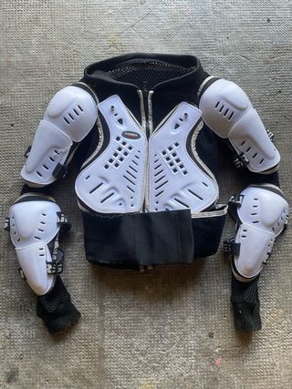 Peto protector de la marca Rainers, diseñado para niños. Ideal para actividades deportivas. En perfecto estado, tanto protecciones como la malla. Mi hijo lo ha estado utilizando desde los 7 hasta ahora con 14 recién cumplidos. Se acaba de lavar a fondo para su venta - Protección para el torso y brazos. - Cierre frontal con cremallera. - Cinturón ajustable para mayor sujeción.