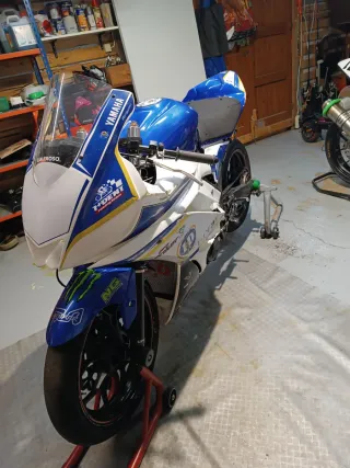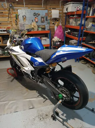 Moto Yamaha R3 preparada para circuito. Con otro juego de neumáticos