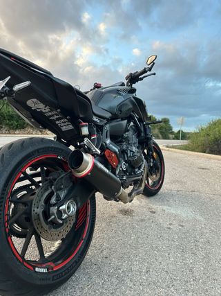 Yamaha MT-07 ABS del año 2021. - Muy cuidada, siempre en garaje. - línea completa mivv (homologada) con varios db killers para el sonido. - Se entrega con el escape y los retrovisores de serie. - Varios extras visuales como protector de motor de fibra de carbono, topes anticaída, porta matriculas corto oficia de Yamaha... - Primera revisión de ITV realizada en agosto del 2025. - Solo un propietario. - Se puede contactar para probar y verla. - Se vende por poco uso.