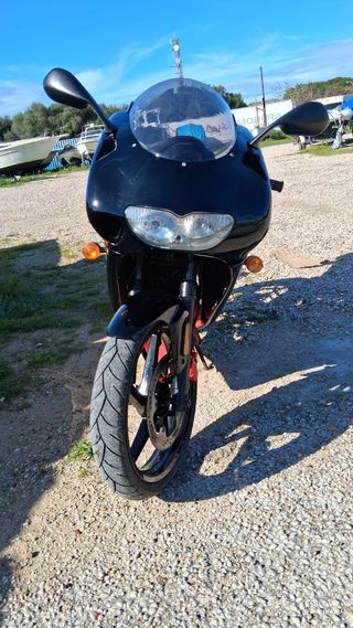 Moto estilo naked en color negro con detalles y chasis en rojo. - Moto de segunda mano. - Ideal para ciudad y carretera. - 15.000km - Refirgerada por aire - Tubo de escape Akrapovič con Db Killer incluido (+serie) - 2 juegos de retrovisores (+serie) - Portamatriculas corto (+serie) - ITV Hasta 2027 - Papeles en regla - Siempre en garage - Frenos relativamente nuevos - Pata de cabra y caballete - Revision en taller (aceite, filtros, bujia, tensado de cadena + lubricado, etc.) - Se acepta cambio por coche