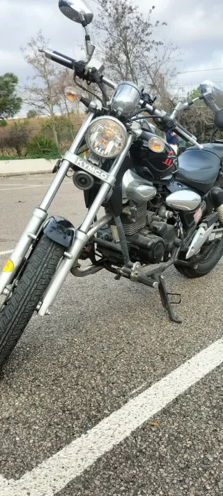 Suzuki Intruder 250cc en buen estado, bien mantenida y lista para rodar. A tener en cuenta: -Año 2007 -Etiqueta medioambiental C -22k kms -ITV en vigor -Se pone a 120 km/h sin problemas, y todavía le queda algo de margen -Tiene un pequeño maletero bajo el asiento(cabe un chubasquero y más) -Sin accidentes -Usada semanalmente -Se le cambió cadena, corona y piñón hace pocos kms -Se le cambió regulador eléctrico -Neumáticos Bridgestone para custom, puestos en 2022 Extras: -Maleta trasera -Engrasador de cadena Cobra Nemo (original)semiautomático -Asiento de gel hecho por taller profesional -Soporte Smartphone muy integrado y discreto