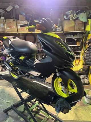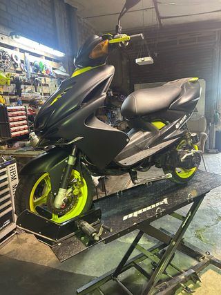 Yamaha Aerox del año 2004. - Diseño deportivo en negro mate con detalles en amarillo neón. - ITV hasta mediados de 2026 -extras en la última foto -funciona todo solo abria k poner topes para volver a pasar itv