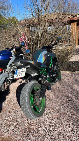 La moto solo tiene una picada en la tapa del motor por caida en parado. DATOS CLAVE: • Año: 2024 (Aún con garantía oficial Kawasaki). • Kilometraje: 11.000 km. • Mantenimiento: Al día. Siempre guardada en garaje privado y limpieza a mano ( mantenimientos incluidos Hasta los 20k no hay que pagarlos) EXTRAS Y MEJORAS (+1.500€ invertidos): • Escape SC Project de Titanio: Sonido espectacular y reducción de peso notable. • Colectores Artesanales: Flujo optimizado para un mejor rendimiento. • Neumáticos Bridgestone Battlax S21: Montados hace solo 1.000 km (al 90% de vida) • Vinilo reactivo al sol. •No intercambio