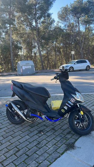 Scooter Yamaha Jog RR en color negro. Un modelo ágil y deportivo. MOTOR BAJADO MOTOR: Cilindro Metrakit Pro Race3 70cc, cigueñal Metrakit Pro Race bulón 12mm, carburador 24mm metrakit mrd || tipo pwk, tobera tipo pwk minareli horizontal, caja laminas v-force 3, rotor mvt naranja, variador malossi multivar, embrague metrakit,escape mk MAS EXTRAS COMO OTRO MOTOR ENTERO DE SERIE A FALTA ITV ESCUCHO CAMBIOS Y OFERTAS