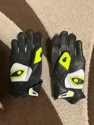 Guantes de piel para moto de talla M, con detalles en color amarillo. - Diseño deportivo. - Protecciones integradas. - Cierre ajustable en muñeca.