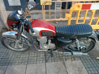 Vendo MASH Cafe Racer 250cc, en muy buen estado, con 24.000 km reales y muchos extras y mejoras. Moto cuidada, fiable y con un estilo café racer espectacular. 🔧 Datos 250 cc 24.000 km Arranque eléctrico Cambio manual ITV en vigor Documentación al día ✨ Extras y mejoras Carenado frontal tipo café racer con pantalla ahumada Escape modificado (sonido bonito, no molesto) Asiento personalizado Retrovisores y manillar estilo café racer Estética personalizada y muy cuidada Mantenimiento siempre al día 🛠️ Estado La moto va perfecta, arranca a la primera y se puede usar a diario sin problema. Bajo consumo y mantenimiento económico.