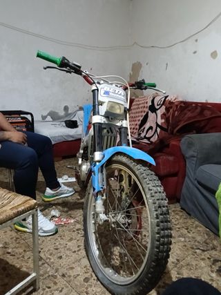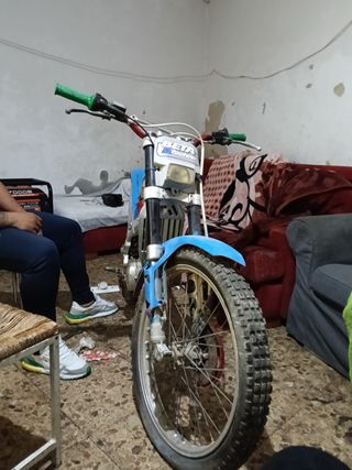 Moto de cross de tamaño reducido, ideal para iniciarse en el mundo del motocross. Algunos extras: Aceite suspensión cambiado Embrague mejorado Caja de laminas vforce 3,pétalos de carbono 19 dellorto original Filtro aire tnt Puños emig Rueda trasera mas ancha que de origen Puño de gas rapido