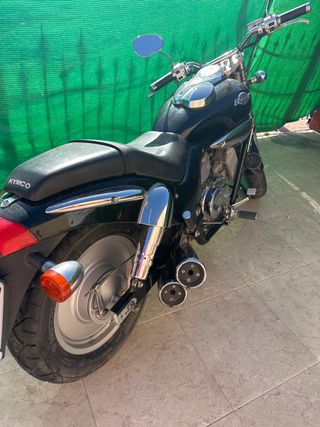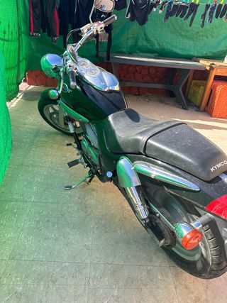 Moto Kymco Venox 250 en color negro, estilo custom. - Motor de 250cc. - Transmisión manual. - Diseño cruiser.