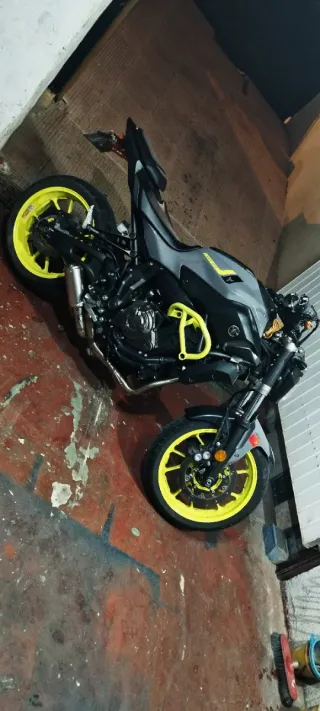 Moto Yamaha MT-07 está limitada para A2 la moto tiene menos de 12000km se entrega como se ve en las fotos todo de casa, con un escape artesanal y cola sc, refuerzos traseros, intermitentes, manetas y topes anticaida