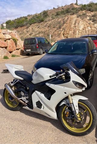 Yamaha R1 del año 2006. discos de freno,pastillas,bujías,reglaje de válvulas,suspensiones echas,todos los líquidos,kit de arrastre16-47,filtro-bmc,estriberas retrasadas doradas, dunlop 212gp Racer y bomba de agua todo nuevo ace año y medio ni 1000kilometros echos con último mantenimiento completo.53.295km - Color azul. - Llantas doradas. - Escape Akrapovič.