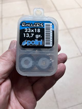 Pack de rodillos Polini para variador. - Precintados. - Medidas: 23x18 mm. - Peso: 13,7 gramos. - Marca: Polini. - Compatibles con Honda SH 300 2008, no sé si son compatibles con versiones posteriores pero supongo que sí.