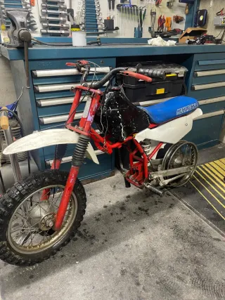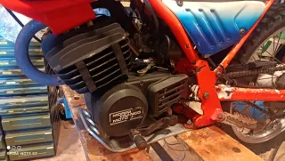 Moto infantil, lleva parada años, se dejó funcionando Horquilla mejor y más alta que la de serie es de Derbi, igual que el Amortiguador trasero, no es el de serie