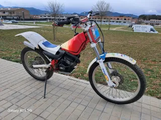 Moto Mecatecno de trial en buen estado. Ideal para aficionados. - Chasis en buen estado. - Llantas en buen estado. - Depósito de gasolina rojo y blanco.