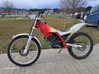 Moto de trial marca MECATECNO modelo DRAGONFLY Cilindrada 50cc. - Restaurada entera. - Cilindro canviado 70cc de la época y carburador 21mm marca dellorto. - Depósito pintado en pintura resistente a la gasolina. - Tubo de escape pulido y tratado para evitar oxidación. - Lana del silenciador de escape Nueva. - Puños nuevos - Asiento sin fisuras y piel en perfecto estado. - Precio negociable