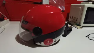 Casco tipo jet en color rojo. Diseño moderno y seguro. - Visera transparente. - Cierre de seguridad. - Interior cómodo. Tiene los arañazos que se ven en la foto