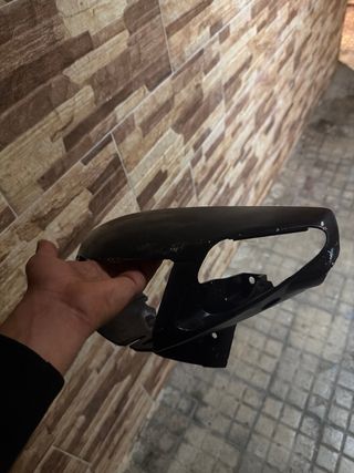 Pieza de plástico negro para moto. - Diseño curvo y aerodinámico. - Aberturas para componentes. - Soporte lateral. Un pintado y como nyevo