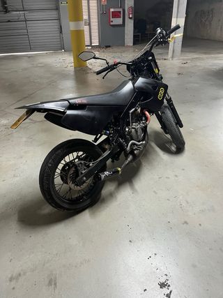 !! ITV CADUCADA !! !! NO CAMBIOS !! -se da todo lo de casa para pasar itv menos la careta (se puede usar cualquiera de derbi) -el cableado no esta tocado y funciona todo -se da otro escape por arriba -2 guardabarros, uno esta vinilado -bifaro vinilada + otra careta -lleva llantas sm cambiadas de drd pro con slicks (no adaptadas) -se dan las ruedas de serie con tacos para la itv, un neumatico nuevo ni 20 km, comprado solo para pasar la itv -cilindro brk 4race 80cc -cigueñal italkit -piston italkit -escape metrakit pro race 70 80 -laminas malosi -embragues top -carburador 28 polini -rotor mvt integral 2 -radiador grande nuevo
