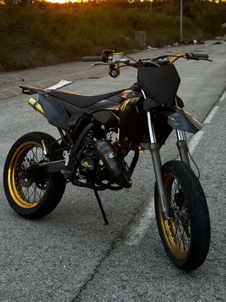 PRECIO NEGOCIABLE -La moto se vende como esta en la primera y tercera foto pero se dan los plasticos negros tambien de la segunda foto -Soy unico propietario la compre nueva en 2024 -DOY TODO LO DE SERIE -Llantas careta escape carburador portamatriculas... -Todo menos el cilindro de serie -Doy un TOP NEGRO 70cc -Y viene montado un 80cc Metrakit Prorace con piston casi nuevo -Viene con los dos radiadores puestos para cuando venga verano solo tengas que poner los tubos refrigerantes del segundo ( Los doy echos a medida)