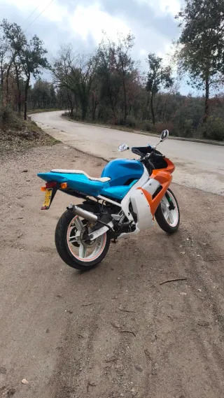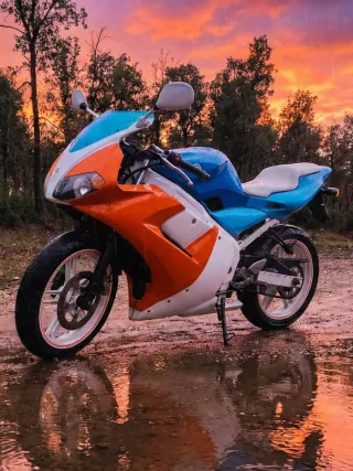 Moto Rieju de 49cc estilo supermotard con caja de cambios manual. - Diseño deportivo en colores azul, rojo y blanco. - Ruedas de aleación con radios. - Escape deportivo. Vendo por falta de uso con el motor recien echo. Metrakit pro race 4 de 80cc Cigueñal top reforzado Carburador rdc de 30 mm Escape krm 80-90 Embragues top Caja de laminas italkit 8 petalos Doy todas la piezas de casa