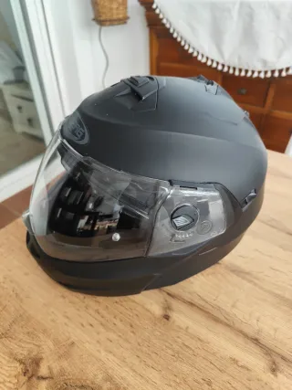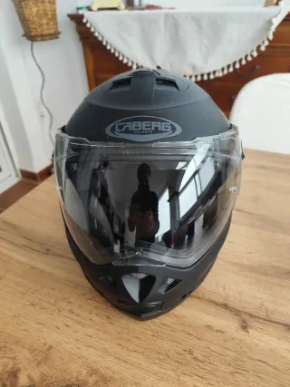 Casco de moto de la marca CABERG en color negro,talla L. Diseño moderno y seguro. Modular - Visera transparente. - Sistema de ventilación superior.