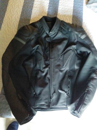 Chaqueta de moto de cuero en talla L. Está en buen estado,muy poco utilizada - Cuero auténtico. - Protecciones incluidas. - Diseño deportivo.