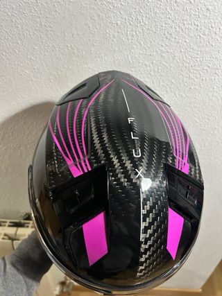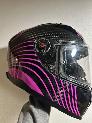 Casco Moto LS2 Carbono Negro y Rosa. Solo 4 usos