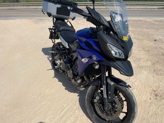 Moto Yamaha Tracer MT-09 en azul del 2017. Está en muy buen estado y lista para disfrutar. Todas las revisiones y mantenimientos en Servicio Oficial Yamaha, 124.000km, ruedas bien, maleta trasera para dos cascos integrales.con 122.000km cambiado piñon y cadena. con 123.000km cambiado discos de embrague, aceite y filtro. lleva en el faro una pequeña rotura pero esta reparada y no entra agua y no influye para la itv. - Incluye baúl superior. - Modelo MT-09. - Color azul.