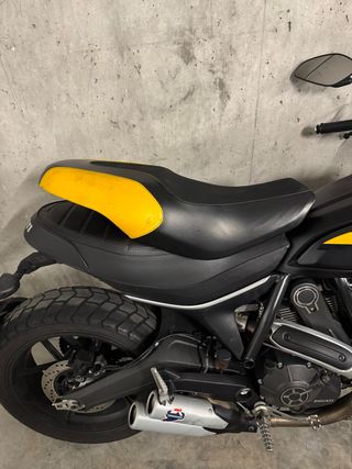 Sillín original para Ducati Scrambler Full Throttle. Está en buenas condiciones, con algunos pequeños signos de uso. - Color amarillo y negro. - Diseño deportivo.