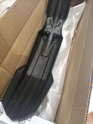 Parachoques de moto en color negro brillante. - Diseño aerodinámico. - Material resistente.