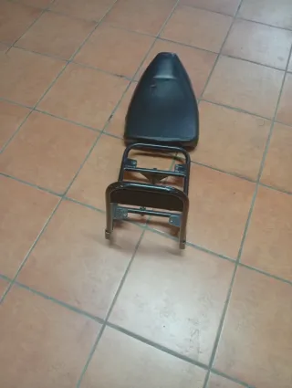 Soporte para baúl de moto Piajo Liberty. - Fabricado en metal negro. - Incluye la base del asiento.