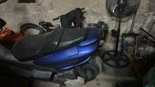 Scooter Aprilia SR50 en buen estado. - Diseño deportivo en blanco y azul. - Rueda delantera visible. - Tiene algo de desgaste - Necesita algunas reparaciones ❗❗ - PRECIO NEGOCIABLE ✅ -Tiene papeles pero no están a mí nombre.