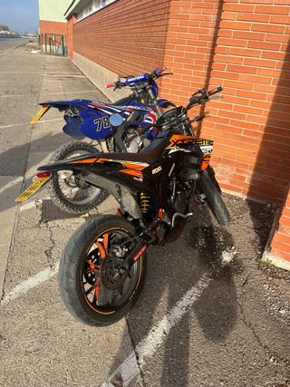 Vendo Beta RRT Trucada supermotard, la moto está en perfectas condiciones y tiene ITV hasta julio de 2026. La moto lleva: - 74 airsal - 24 rdc - escape 70 / 80 rdc - filtro de espuma tdr - puños most - careta plana yz - guardabarros acerbis evo - ruedas de supermotard - marcador de temperatura voca También doy de extras: - Ruedas de Cross - Cilindro gripado por si se quiere rectificar - carburador 21 pwk - embragues antiguos - Tubo de escape de serie