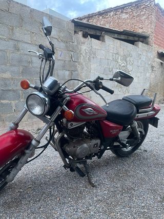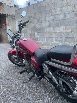 En buen estado,excepto algunas rayas y pequeños golpes, funciona muy bien, itv pasada y al dia de aceite etc. año 2004 , 76.000km, se pueden incluir alforjas o baul trasero.