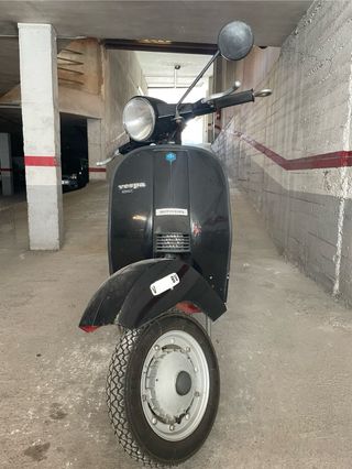Preciosa Vespa PK 75 S en color negro. Modelo primero de la serie sin intermitentes, pocas unidades. Está en buen estado de conservación, ideal para amantes de las motos clásicas. Vehiculo catalogado como historico, pasa ITV cada 4 años. Cilindro y escape Polini. Tengo el escape original.