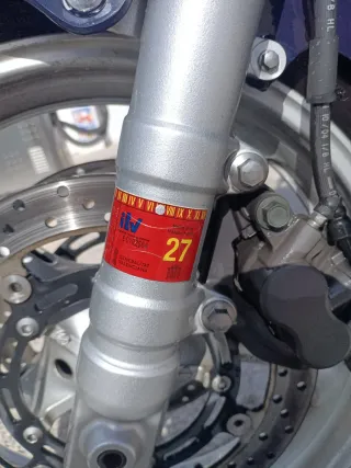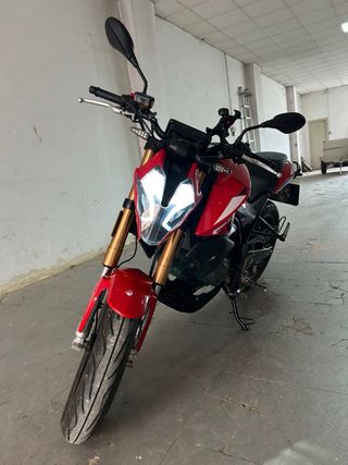 Moto deportiva de color rojo con detalles en negro y dorado. Diseño moderno y aerodinámico. - Año 2024. - Con Garantía. - 6.000km. - Con 2 revisiones, la de los 1.000km y 5.000km. - Guardada en garaje y bien cuidada. - Ruedas en perfecto estado. - Faro delantero LED. - Horquilla delantera dorada. - Escape deportivo. Se vende por cambio de cilindrada.