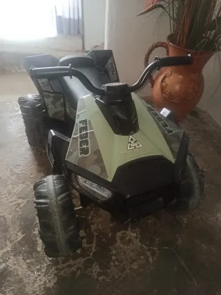 Moto eléctrica infantil de color rosa, en buen estado. Ideal para los más pequeños. - Diseño tipo quad. - Asiento negro. - Ruedas de goma.