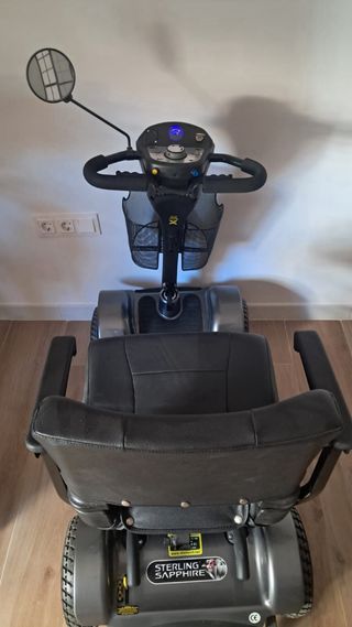 Scooter eléctrico Sterling Sapphire 2 en color gris. Ideal para desplazamientos cómodos. - Diseño moderno y funcional. - Asiento acolchado. - Cesta delantera. - Ruedas resistentes.