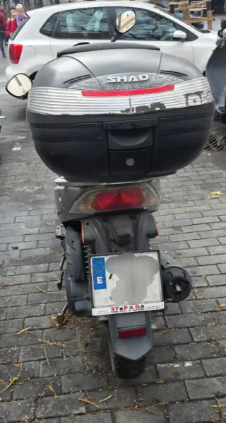Honda SH 125i del año 2006. Venta dirigida a profesional, sin garantía. Incluye candado de manillar, maleta trasera y pantalla/parabrisas. ITV pasada hasta 2027. La moto funciona correctamente, aunque presenta desperfectos estéticos en los plásticos.