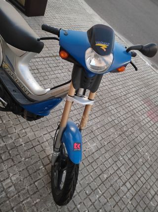 Derbi variant muy bien cuidada, recién puesta a punto. Solo tiene roto un embellecedor de la amortiguación delantera que no afecta al funcionamiento. Escape metrakit, cubiertas, cadena, intermitentes, puños... todo nuevo. Sillón recién tapizado. Nunca se ha trucado, siempre a 49cc. Se regalan más carenados de otros colores y varias piezas de repuesto.
