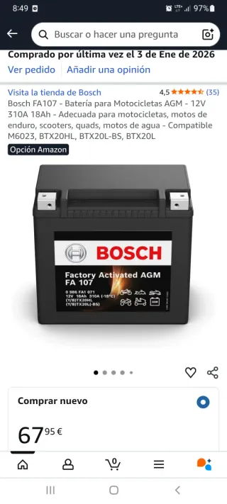Batería Bosch FA107 AGM 12V 18Ah