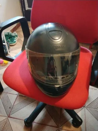 Casco integral para motociclistas, con un diseño moderno y protector. - Visera transparente. - Cierre de seguridad. - Interior acolchado.